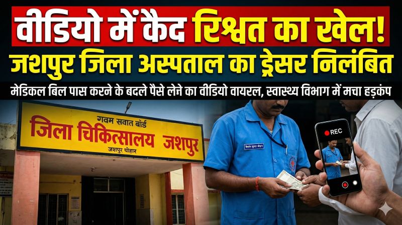 Read Moreवीडियो में कैद रिश्वत का खेल! जशपुर जिला अस्पताल का ड्रेसर रंगे हाथों बेनकाब, एक झटके में निलंबित—स्वास्थ्य विभाग में मचा हड़कंप