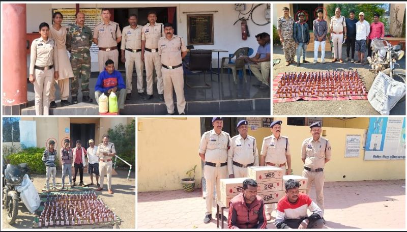 1 लाख 17 हजार रूपये कीमत के 759 नग अंग्रेजी शराब व 12 लीटर महुआ शराब जप्त। सार्वजनिक स्थान पर शराब पीकर उपद्रव करने वाले 4 लोगों के विरूद्ध भी हुई कार्रवाई। जिले की पुलिस सक्रियता से अवैध शराब के विरूद्ध चला रही अभियान। सूरजपुर : डीआईजी व एसएसपी प्रशांत कुमार ठाकुर के निर्देश पर होली से पहले अवैध शराब पर पुलिस की कड़ी कार्रवाई लगातार जारी है। दिनांक 03.03.2026 को थाना चांदनी पुलिस को मुखबीर से सूचना मिली कि 2 मोटर सायकल में 4 व्यक्ति भारी मात्रा में अंग्रेजी…