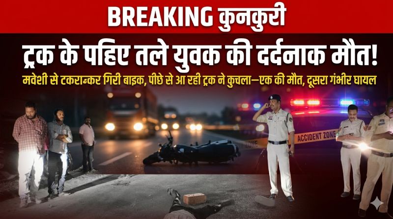 Read Moreकुनकुरी में खौफनाक हादसा: मवेशी से टकराई बाइक, सड़क पर गिरे युवक को तेज रफ्तार ट्रक ने रौंदा—सिर कुचलने से मौके पर दर्दनाक मौत, दूसरा जिंदगी के लिए जूझ रहा