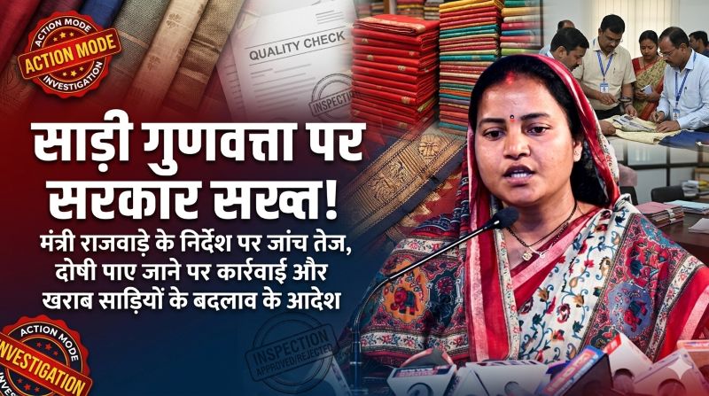 साड़ी गुणवत्ता पर सरकार सख्त मंत्री श्रीमती राजवाड़े के निर्देश पर जांच तेज प्रबंध संचालक खादी एवं ग्रामोद्योग बोर्ड को पत्र जारी दोष मिलने पर कार्रवाई और साड़ियों के बदलाव के निर्देश रायपुर : राज्य में आंगनबाड़ी कार्यकर्ताओं एवं सहायिकाओं को वितरित की गई साड़ियों की गुणवत्ता को लेकर सामने आई शिकायतों पर छत्तीसगढ़ सरकार ने कड़ा रुख अपनाया है। महिला एवं बाल विकास मंत्री श्रीमती लक्ष्मी राजवाड़े ने मामले को गंभीरता से लेते हुए इसकी गहन जांच कराने के निर्देश दिए हैं। मंत्री श्रीमती राजवाड़े के निर्देश पर महिला…