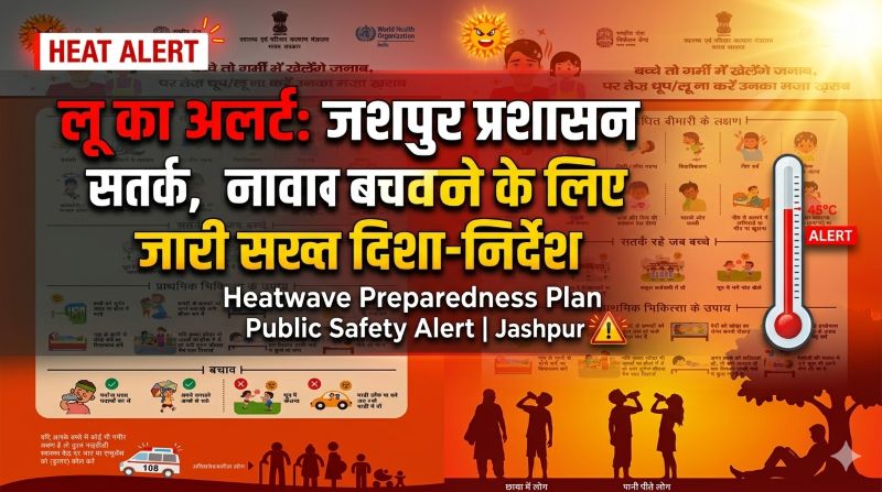 Read Moreजशपुर में लू का रेड अलर्ट: कलेक्टर के सख्त निर्देश, स्कूल से सड़क तक अलर्ट मोड—प्याऊ, ORS केंद्र, हीट स्ट्रोक यूनिट और हेल्पलाइन के साथ ‘जीरो कैजुअल्टी’ की तैयारी