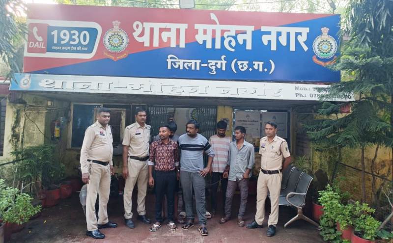 नाम आरोपी – 01. जयदीप साहू उम्र 29 वर्ष संतोषी चौक जामुल, 02. दीपक गुप्ता उम्र 35 साल न्यू खुर्सीपार, 03. सागर जायसवाल उम्र 27 साल हाउसिंग बोर्ड थाना जामुल, 04. अजय शर्मा उम्र 31 साल कुरूद थाना जामुल, 05. आकाश चौधरी उम्र 26 सालकुरूद थाना जामुल, 06. अंकित वर्मा उम्र 28 साल कुरूद थाना जामुल.