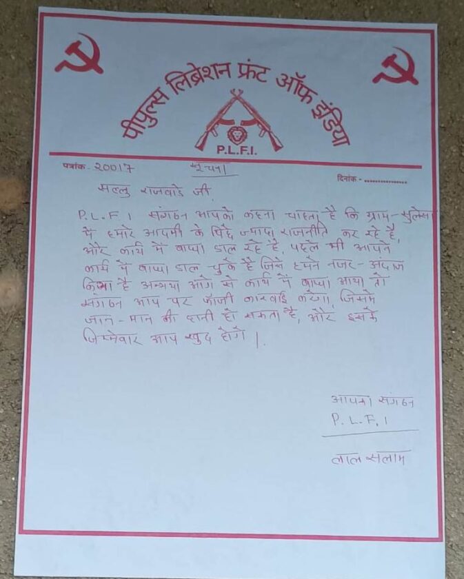 Big Breaking : जशपुर में नक्सली पर्चे से मचा हड़कंप! पीएलएफआई संगठन के नाम पर फैली दहशत, पुलिस अलर्ट मोड पर