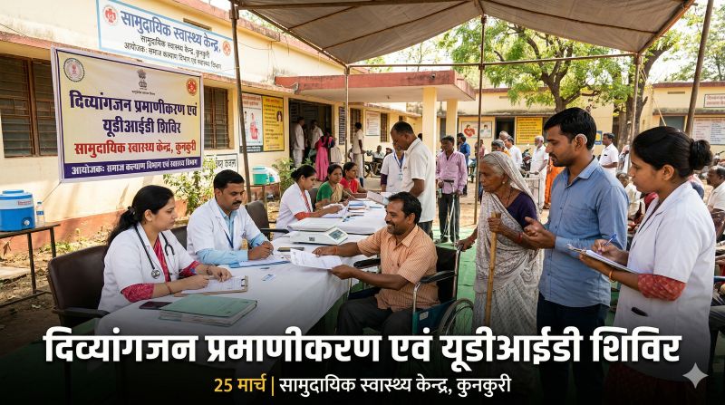 दिव्यांगजन प्रमाणीकरण तथा यूडीआईडी शिविर 25 मार्च को सामुदायिक स्वास्थ्य केन्द्र कुनकुरी में होगी आयोजित