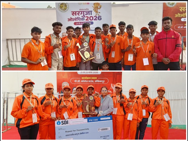 संभाग स्तरीय सरगुजा ओलंपिक 2026 : जशपुर के खिलाड़ियों ने 17 स्वर्ण पदक 20 रजत पदक और 16 कांस्य पदक जीतकर जिले को किया गोरवांन्वित