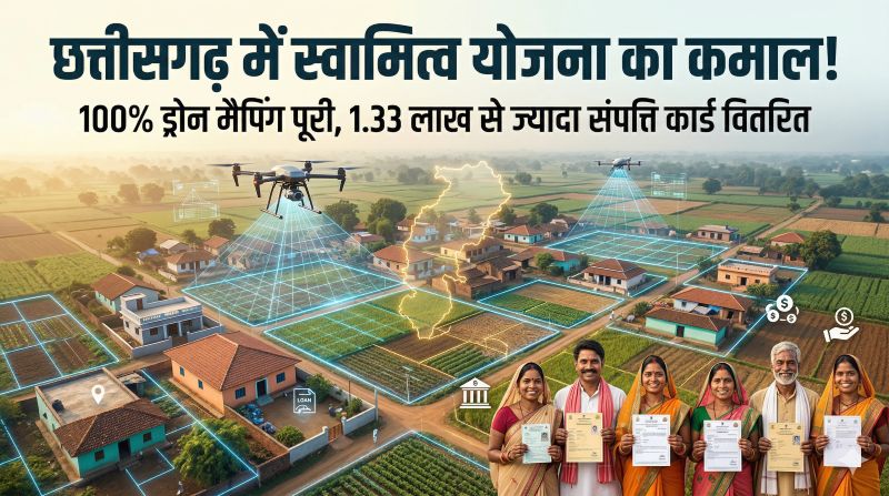छत्तीसगढ़ में स्वामित्व योजना ने हासिल किया 100% ड्रोन मैपिंग का लक्ष्य; ग्रामीण परिवारों को 1.33 लाख से अधिक संपत्ति कार्ड वितरित