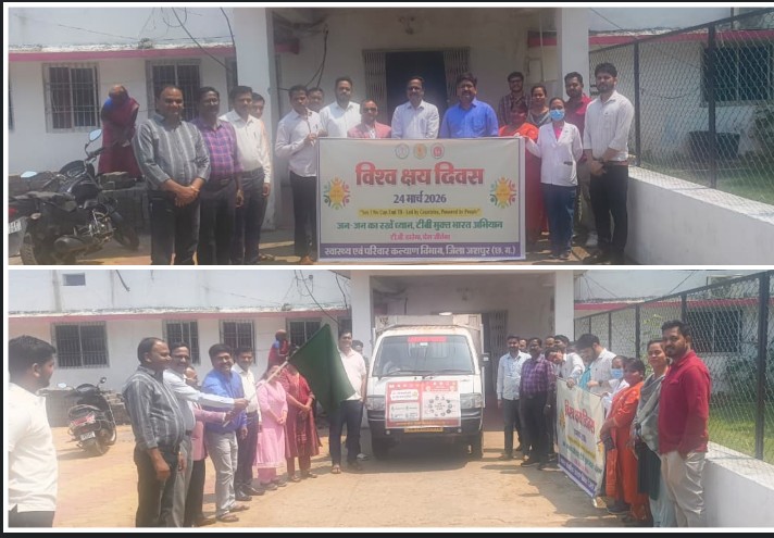 जशपुर : राष्ट्रीय क्षय उन्मूलन कार्यक्रम अंतर्गत टी.बी. मुक्त भारत अभियान के तहत 24 मार्च को विश्व क्षय दिवस के अवसर पर जिले में 100 दिवसीय “निक्षय निरामय 2.0 अभियान” का शुभारम्भ किया गया। कलेक्टर श्री रोहित व्यास ने स्वास्थ्य अधिकारियों को अभियान के तहत व्यापक स्तर पर जांच एवं सर्वे कर टी.बी. मरीजों की पहचान सुनिश्चित करने तथा उन्हें समय पर उपचार उपलब्ध कराने के निर्देश दिए हैं, ताकि जिले को टी.बी. मुक्त बनाया जा सके। उन्होंने आम नागरिकों से भी अपील की है कि टी.बी. के लक्षण दिखाई देने पर नजदीकी स्वास्थ्य केन्द्र में जाकर जांच एवं उपचार कराएं और अभियान को सफल बनाने में सहयोग दें। इस अवसर पर मुख्य चिकित्सा एवं स्वास्थ्य अधिकारी डॉ जी एस जात्रा एवं अन्य अधिकारियों ने प्रचार प्रसार रथ को हरी झण्डी दिखाकर रवाना किया