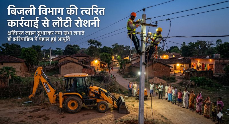 जशपुर : छत्तीसगढ़ स्टेट पावर डिस्ट्रीब्यूशन कंपनी लिमिटेड, कुनकुरी द्वारा त्वरित कार्रवाई करते हुए ग्राम झरियाडिप्पा में क्षतिग्रस्त विद्युत लाइन की सूचना प्राप्त होने पर बिजली लाइन को सुधारकर सुचारू रूप से बहाल कर दिया गया है। विद्युत विभाग के कुनकुरी कार्यपालन यंत्री ने बताया कि 22 मार्च 2026 की रात्रि में एक मकान निर्माण कार्य के दौरान जेसीबी मशीन से गिट्टी उठाने के समय लापरवाहीवस विद्युत खंभा क्षतिग्रस्त हो गया, जिससे विद्युत तार जमीन पर गिर गया। घटना की सूचना मिलते ही विद्युत विभाग का अमला तत्काल मौके पर पहुंचा और सुरक्षा की दृष्टि से लाइन को तुरंत बंद कर क्षेत्र को सुरक्षित किया गया। इसके पश्चात विभाग द्वारा क्षतिग्रस्त खंभे को हटाकर नया खंभा स्थापित किया गया तथा विद्युत लाइन को दुरुस्त कर पुनः चालू कर दिया गया। पूरी प्रक्रिया त्वरित एवं व्यवस्थित रूप से संपन्न की गई, जिससे क्षेत्र में विद्युत आपूर्ति शीघ्र बहाल हो सकी।