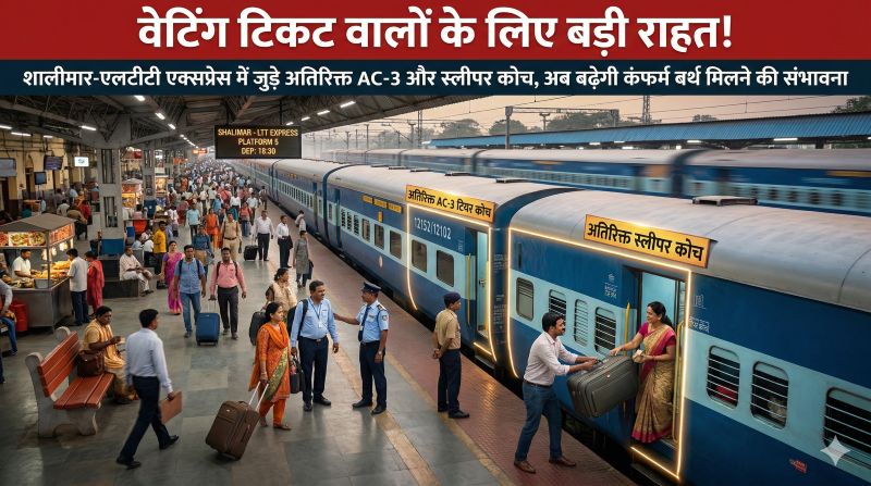 शालीमार-एलटीटी-शालीमार एक्सप्रेस में एक अतिरिक्त एसी-03 एवं स्लीपर कोच की सुविधा
