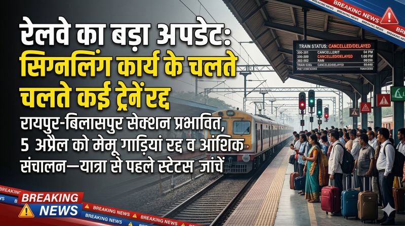 👉 दिनांक 05 अप्रैल 2026 को बिलासपुर से चलने वाली गाडी संख्या 68719 बिलासपुर-रायपुर मेमू पैसेंजर रद्द रहेगी ।