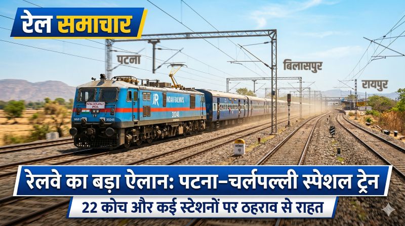 पटना-चर्लपल्ली-पटना के मध्य 15-15 फेरों के लिए स्पेशल ट्रेन का परिचालन, यात्रियों को मिलेगी कंफर्म बर्थ के साथ यात्रा सुविधा