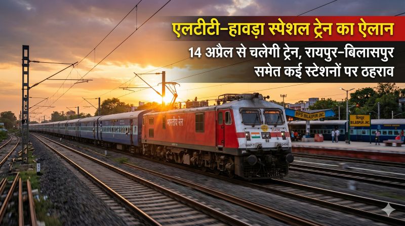 गाड़ी संख्या 01145 एलटीटी-हावड़ा स्पेशल ट्रेन एलटीटी से दिनाँक 14 अप्रैल 2026 (मंगलवार) को चलेगी | इसी प्रकार गाड़ी संख्या 01146 हावड़ा-एलटीटी स्पेशल ट्रेन हावड़ा से दिनाँक 16 अप्रैल 2026 (गुरुवार) को चलेगी | इस गाड़ी का वाणिज्यिक ठहराव दक्षिण पूर्व मध्य रेलवे के गोंदिया, दुर्ग, रायपुर एवं बिलासपुर स्टेशनों में दिया गया है |