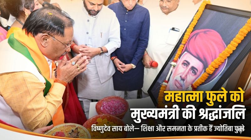 मुख्यमंत्री साय ने ज्योतिबा फुले को पुष्पांजलि अर्पित की