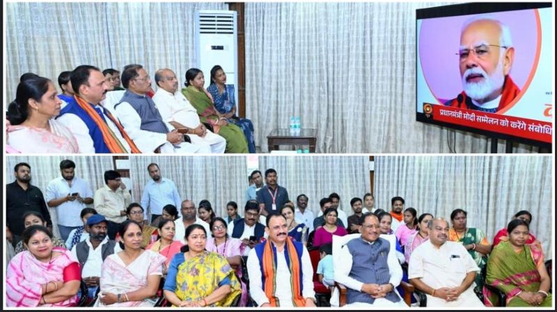 रायपुर : मुख्यमंत्री श्री विष्णुदेव साय ने आज राजधानी रायपुर स्थित मुख्यमंत्री निवास कार्यालय में नई दिल्ली के विज्ञान भवन से प्रसारित ‘नारी शक्ति वंदन सम्मेलन’ में प्रधानमंत्री श्री नरेंद्र मोदी के उद्बोधन को सुना। इस अवसर पर उन्होंने कहा कि यह देश की मातृशक्ति के लिए एक ऐतिहासिक क्षण है, जो भारत के लोकतांत्रिक ढांचे को और अधिक समावेशी एवं सशक्त बनाने की दिशा में निर्णायक साबित होगा।