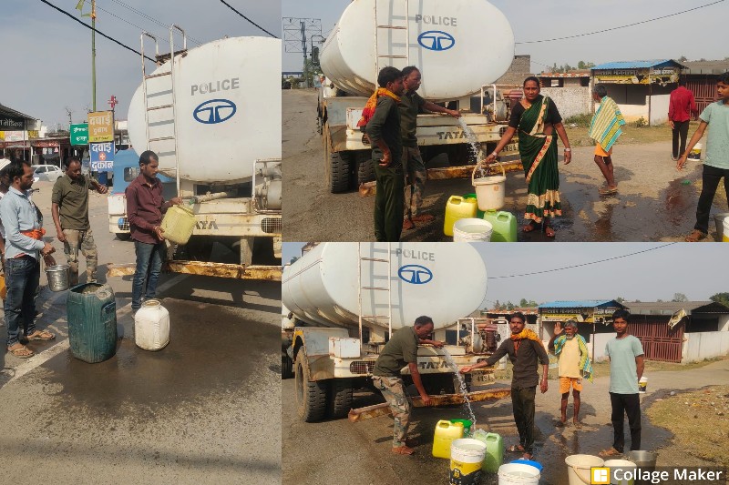 सूरजपुर पुलिस ने टैंकर से नगरवासियों को उपलब्ध कराया स्वच्छ पानी.