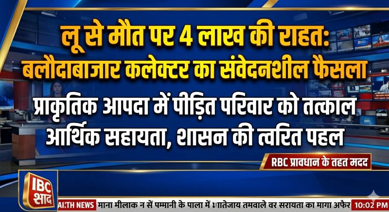 रायपुर : प्रदेश में बढ़ती गर्मी और लू के प्रकोप के बीच जिला प्रशासन ने एक पीड़ित परिवार को बड़ी राहत प्रदान की है। प्राकृतिक आपदा के मामलों में त्वरित कार्रवाई करते हुए कलेक्टर ने लू लगने से जान गंवाने वाले व्यक्ति के परिजनों के लिए 4 लाख रुपये की आर्थिक सहायता राशि स्वीकृत की है।