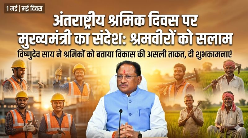 रायपुर : मुख्यमंत्री विष्णु देव साय ने अंतर्राष्ट्रीय श्रमिक दिवस (मई दिवस) के अवसर पर प्रदेश के समस्त श्रमवीरों को हार्दिक बधाई एवं शुभकामनाएं प्रेषित करते हुए उनके सुखमय, सुरक्षित एवं उज्ज्वल भविष्य की मंगलकामना की है। उन्होंने कहा कि प्रत्येक वर्ष 1 मई का यह महत्वपूर्ण दिवस उन परिश्रमी हाथों के सम्मान का प्रतीक है, जिनके अथक श्रम, समर्पण एवं निष्ठा से समाज और राष्ट्र की प्रगति का आधार सुदृढ़ होता है।