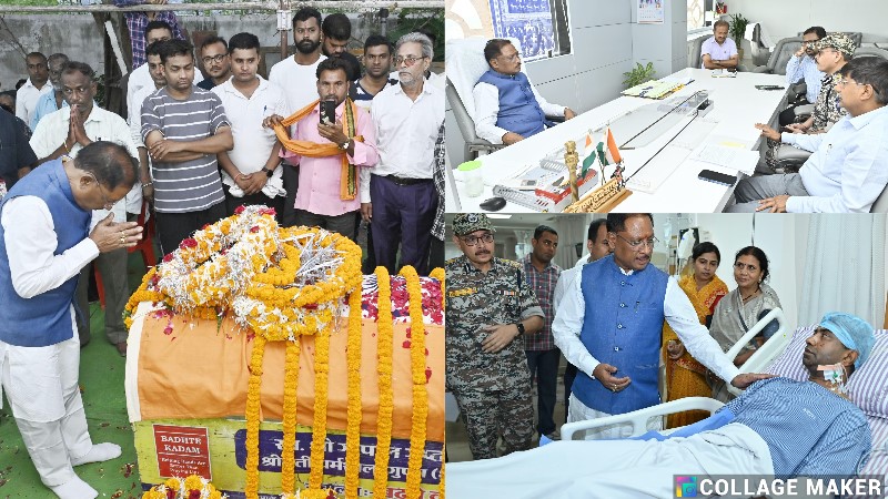 शहीद एएसपी श्री गिरपुंजे के पार्थिव देह पर पुष्प चक्र अर्पित कर दी श्रद्धांजलि : परिवारजनों में मिलकर ढांढस बंधाया मुख्यमंत्री ने गृह विभाग के अधिकारियों की हाई लेवल बैठक में नक्सल घटना की जानकारी ली अस्पताल पहुंचकर नक्सल घटना में घायल जवानों से की मुलाकात रायपुर 09 जून 2025/ मुख्यमंत्री विष्णुदेव साय ने आज सुकमा जिले के कोंटा में नक्सलियों द्वारा किए गए आईईडी विस्फोट में शहीद एएसपी श्री आकाश राव गिरपुंजे के राजधानी रायपुर स्थित निवास पहुंचकर उनके पार्थिव देह पर पुष्पचक्र अर्पित कर उन्हें श्रद्धांजलि दी। मुख्यमंत्री…