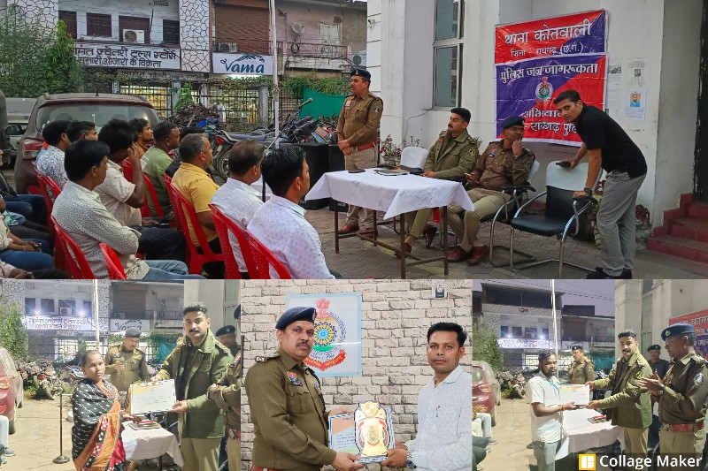 कोतवाली थाना परिसर में 14 श्रेष्ठ नागरिक हुए सम्मानित, सीएसपी मयंक मिश्रा ने जवाबदेही और सहयोग का दिया संदेश रायगढ़ : रायगढ़ कोतवाली थाना परिसर में 22 नवंबर 2025 को आयोजित मासिक बैठक में विभिन्न क्षेत्रों में उत्कृष्ट योगदान देने वाले 14 श्रेष्ठ नागरिकों को सम्मानित किया गया। नगर पुलिस अधीक्षक मयंक मिश्रा की अध्यक्षता में हुए इस कार्यक्रम में जनप्रतिनिधियों, ऑटो चालक संगठन और स्थानीय समाजसेवियों की सक्रिय भागीदारी रही। सम्मान समारोह का उद्देश्य सामाजिक सहयोग, जागरूकता और पुलिस–जन सहभागिता को मजबूत करना था। रायगढ़ कोतवाली थाना परिसर में…