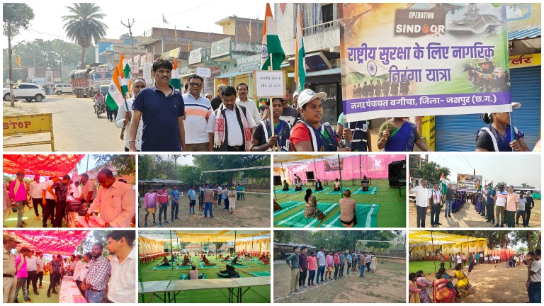 शिविर में समस्याओं का मौके पर हो रहा समाधान जशपुर, 17 मई 2025/ मुख्यमंत्री श्री विष्णुदेव साय के नेतृत्व में छत्तीसगढ़ राज्य में आम जनता की शिकायतों एवं मांगों के त्वरित समाधान के लिए ‘सुशासन तिहार’ का आयोजन पूरे उत्साह के साथ जारी है। तीसरे चरण में गांवों और कस्बों में शासन-प्रशासन पूरी तत्परता साथ आमजन की बाते सुन रहा है और उनका समाधान कर रहा है। इसी तारतम्य में जिले के सभी विकास खंड में 17 मई को तिरंगा यात्रा निकाली गई और ऑपरेशन सिंदुर और देश के रक्षा…