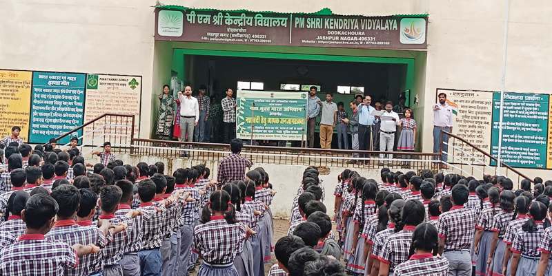 जशपुर, 08 अगस्त 2025/ नशामुक्त भारत अभियान की 5वीं वर्षगांठ के अवसर पर जन-जागरूकता कार्यक्रम के तहत आज पी.एम. श्री केन्द्रीय विद्यालय जशपुर में नशामुक्ति शपथ का आयोजन किया गया। जिसमें लगभग 600 की संख्या में छात्र-छात्राओं ने भाग लिया और शपथ दिलाया गया। शपथ समारोह में समाज कल्याण विभाग जशपुर के अधिकारी द्वारा युवाओं को प्रेरित करते हुए कहा गया कि नशापान समाज एवं देश के विकास के लिए सर्वाधिक बाधक तत्व है। नशापान से व्यक्ति की सामाजिक, आर्थिक, सांस्कृतिक, प्रतिष्ठा कम होती है तथा आये दिन सड़क दुर्घटनाएं,…