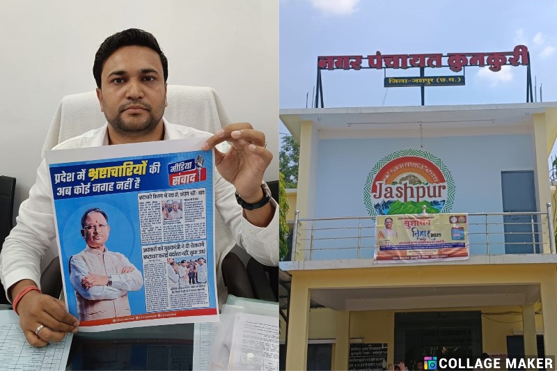 कुनकुरी (जशपुर) 13 मई 2025 | सागर जोशी- संपादक मुख्यमंत्री विष्णुदेव साय के विधानसभा क्षेत्र कुनकुरी से भ्रष्टाचार की एक बड़ी गूंज उठी है। एक ओर प्रदेश सरकार “भ्रष्टाचार मुक्त शासन” का दम भर रही है, तो दूसरी ओर उसी सरकार के नगरीय निकाय में करोड़ों की धांधली के गंभीर आरोप सामने आ रहे हैं। कुनकुरी नगर पंचायत के अध्यक्ष विनयशील ने प्रेस के समक्ष मुख्य नगर पालिका अधिकारी (CMO) प्रवीण उपाध्याय पर बेजोड़ भ्रष्टाचार, फर्जी टेंडर, अवैध भुगतान और शासकीय राशि की बंदरबांट के सनसनीखेज आरोप लगाए हैं। इस…